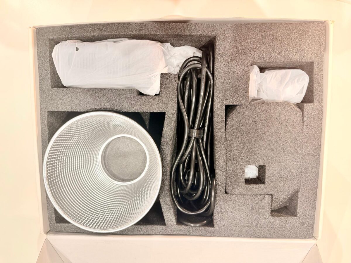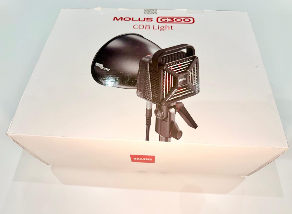 • projecteur ZHIYUN Molus G300 avec son contrôleur externe d’origine, valise de transport Zhiyun, réflecteur Bowens, capuchon de protection de la LED COB, câbles d’alimentation et de connexion (longueur 7,5 m), le tout dans son emballage d’origine. Vous aurez tout comme si vous l’achetiez neuf.